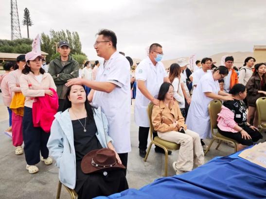 8月25日下午,鸣沙山月牙泉景区的大漠风光里,添了抹浓郁的“中医药馨香”——敦煌市“中医药文化惠民活动”在此开展。敦煌市总医院的医务人员带着“国粹良方”走进景区,为往来游客送上免费健康服务,让旅途不仅有诗与远方,更有贴心守护。