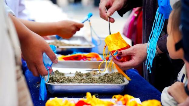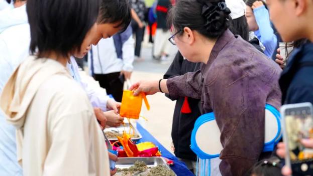 暖胃又暖心的养生花草茶,更是让现场排起了长队。捧着温热的茶饮,来自武汉的游客惊喜不已:“没想到在旅途中还能体验国粹的魅力,太贴心了!”中药香包、香锤手作体验区同样人气爆棚,馥郁的中式香氛弥漫在空气中,游客们亲手选材、缝制,将这份带着敦煌温度的“健康伴手礼”收入囊中。活动中,表演者们还在山门广场前带领游客练起了中国传统健身功法八段锦,现场互动热闹十足。